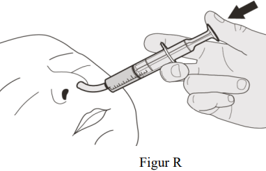 Steg D2 Sjekk at det ikke er noe legemiddel igjen i den orale sprøyten (se Figur Q). |
