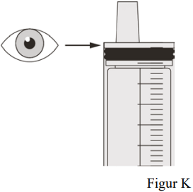 Steg B2 Sjekk at det ikke er noe legemiddel igjen i den orale sprøyten (se figur K). |