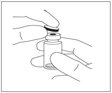 1. Ta av plasthetten og desinfiser den ytre delen av gummiproppen på hetteglasset.