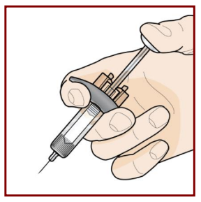 Hold på sprøytekroppen (ikke i stemplet) for å fjerne den ferdigfylte sprøyten.