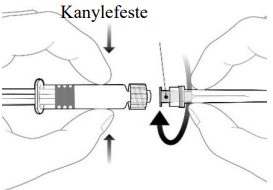 Fest kanylen til sprøyten ved å koble den til Luer-lock adapteret og drei en kvart omdreining med klokken til du kjenner at den låses.