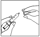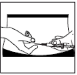 Fjern nålens beskyttelseshette. Hold sprøyten med nålen oppover og slå forsiktig på siden av sprøyten for å presse eventuelle luftbobler til toppen.