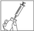 Ta av beskyttelseshetten. Hold sprøyten med kanylen vendt oppover, og knips forsiktig på siden av sprøyten for å tvinge eventuelle luftbobler til toppen.