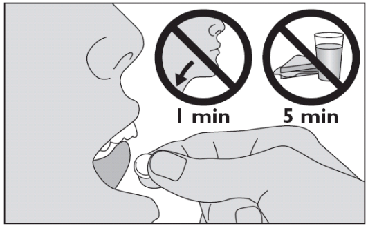 Ikke spis eller drikk på minst 5 minutter etter å ha tatt legemidlet.