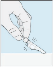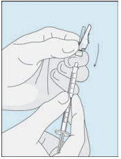 Fjern kanylehetten Trekk plasthetten på injeksjonskanylen forsiktig av. Ikke berør kanylen eller la den komme i kontakt med andre overflater.