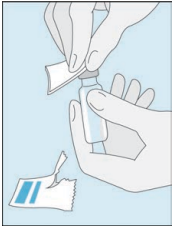 Rengjør hetteglasset Rengjør toppen av Hepcludex-hetteglasset igjen med en ny alkoholserviett.
