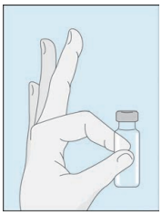 Injiser sterilt vann i pulveret Bank forsiktig på Hepcludex-hetteglasset for å løsne pulveret.