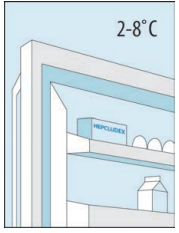 1A Oppbevaring Hepcludex-hetteglass må oppbevares i originalemballasjen i kjøleskapet (2-8ºC) for å beskytte Hepcludex mot lys. |