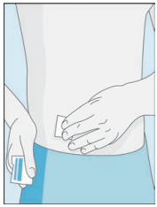 3I Klargjør injeksjonsstedet Klem og hold en rengjort hudfold rundt injeksjonsstedet. |