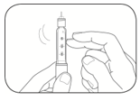 Fortsett å holde pennen med kanylen pekende oppover. Press doseringsstempelet inn inntil det stopper og ”0” vises i doseringsvinduet. Hold doseringsstempelet inne og tell sakte til 5.