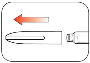 Hvis du ikke kan fjerne pennehetten; vri hetten forsiktig frem og tilbake og trekk så hetten rett av.