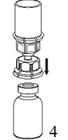 Trekk luft inn i en tom, steril sprøyte. Mens IDELVION-hetteglasset står loddrett kobler du sprøyten til Mix2Vial-settets Luer Lock ved å skru med klokken. Press luften inn i IDELVION- hetteglasset. |