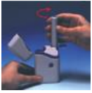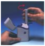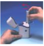 Trykk GlaxoPen ned i den tomme beholderen, og vri den mot venstre.