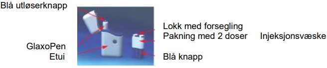 Etuiet med GlaxoPen kan brukes på nytt. (Ta vare på bruksanvisningen.)