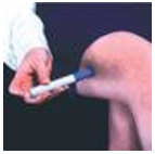 (Vær forsiktig da sprøytespissen nå stikker ut.) -