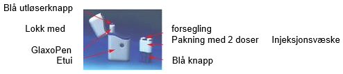 Etuiet med GlaxoPen kan brukes på nytt. (Ta vare på bruksanvisningen.)