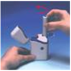 Den hvite delen av stempelet stikker nå ut i enden av GlaxoPen.