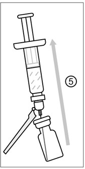 5) Etter rekonstituering, vipp hetteglasset litt på siden og trekk hele innholdet (0,5 ml) av den rekonstituerte vaksinen inn i den samme sprøyten. Ikke snu hetteglasset opp/ned for å sikre fullstendig uttrekking av det rekonstituerte volumet.