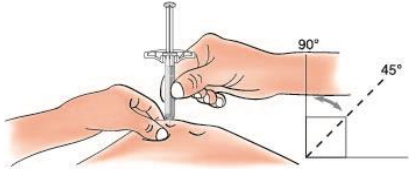 Trinn 3: InjisereG. Hold den sammenklemte huden. Når nålehetten er tatt av setter du sprøyten inn i huden i en vinkel på mellom 45 og 90 grader