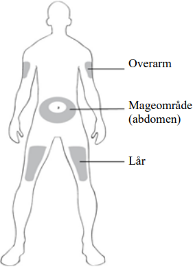 Ikke injiser i et område der huden er øm, har blåmerker eller er rød eller hard.