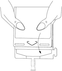 Press den brettede posen rett under kanten på oppløsningen for å bryte forsegling nummer to, slik at væsken fyller infusjonsporten (figur 4).