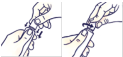 Trykk ned hetten og drei mot klokken (vri mot venstre). Trekk så hetten av.