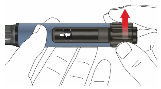 Ikke trykk på trykknappen. Tilbakestill pennen ved kun å vri doseringsskiven mot urviseren til startposisjonen.