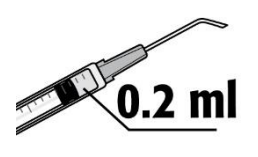 5. Press forsiktig luften ut av sprøyten. Juster til 0,2 ml. Sprøyten er klar til injeksjon.
