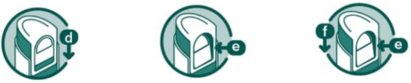 5. Før knappen (d) nedover til den kommer i en posisjon der du kan trykke den lett innover (e).