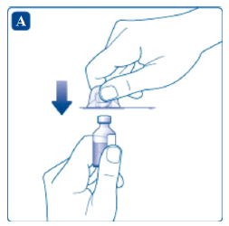 Bruk alltid aseptisk teknikk. Hendene skal vaskes før start. Temperer hetteglassene med pulveret og oppløsningsvæsken til høyst 25ºC ved å holde dem i hendene til de føles like varme som hendene. Fjern plastlokkene fra de to hetteglassene. Dersom lokkene er løse eller mangler, må du ikke bruke hetteglassene. Rens gummiproppene på hetteglassene med alkoholservietter og la dem tørke før bruk.