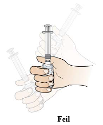 Hold den fylte sprøyten i hånden, og ikke berør sprøytespissen.
