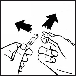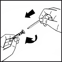 Koble den fylte sprøyten fra hetteglassadapteren ved å dreie mot urviseren. Kast det tomme hetteglasset.