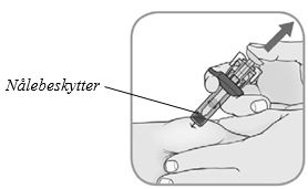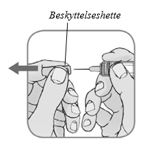 Ikke sett beskyttelseshetten tilbake på nålen etter at den har vært fjernet. Du kan kaste hetten i husholdningsavfallet etter injeksjonen.