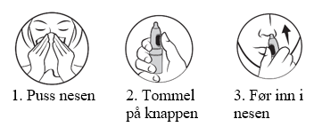 4. Trykk på knappen for å spraye og pust samtidig rolig inn gjennom nesen. Gjenta denne prosedyren (trinn 2 til 4) i det andre neseboret.