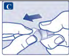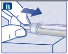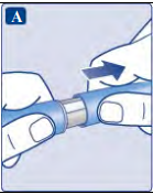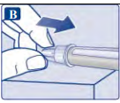Nålen er dekket av to hetter. Du må fjerne begge hettene. Dersom du glemmer å fjerne begge hettene, vil du ikke få injisert noe oppløsning.