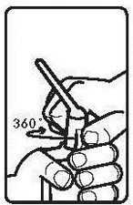 2. Skru munnstykket én hel runde med klokken for å bryte forseglingen. (Spissen skal nå peke i samme retning som før du skrudde den rundt).