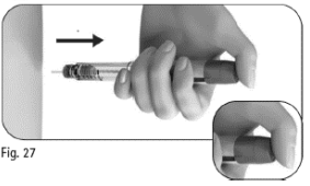 6.3 Fortsett å skyve den tildekkede kanylen mot en fast overflate til du hører et klikk («click») (figur 29).