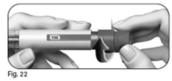 5.2 Plasser tommelen i midten av doseinnstillingsknappen. Trykk doseinnstillingsknappen sakte helt inn og hold den inne for å fullføre hele injeksjon (figur 25).