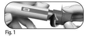 6.2 Ta et godt tak i Pergoveris ferdigfylt penn med én hånd, og stikk kanylen inn i den ytre kanylehetten (figur 28).