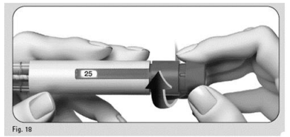 1. Vri doseinnstillingsknappen forsiktig forover til den viser «25» i doseringsvinduet (figur 18).