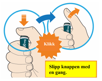 Du vil høre et klikk. Injeksjonen har nå startet.
