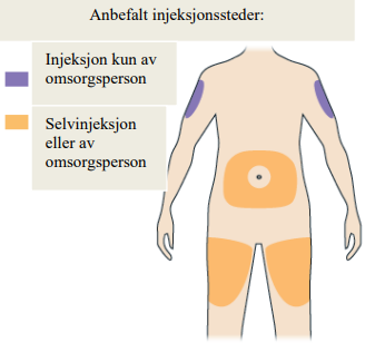 Legemidlet injiseres under huden din og kan injiseres av deg selv eller en omsorgsperson.