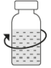 Plasser hetteglasset med Prolastina pulver i stående posisjon på underlaget. Snu enheten med hetteglasset med oppløsningsvæsken og adapteren opp-ned 180º. Press den gjennomsiktige/hvite delen av adapteren rett ned - uten å vri - inntil nålen perforerer proppen og overføringssettet klikker på plass.