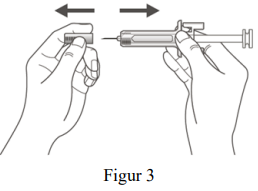 Kanylehetten skal ikke fjernes fra den ferdigfylte sprøyten før instruksjonen viser det.