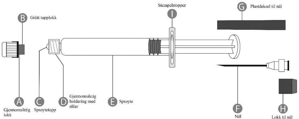 Oppbevar hetteglasset og sprøyten i ytteremballasjen for å beskytte mot lys.