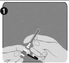 Instruksjoner for rekonstituering av Rabipur ved hjelp av en ferdigfylt sprøyte: