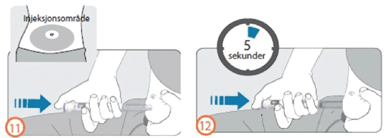 Å holde injeksjonsknappen inne i 5 sekunder tillater at hele dosen blir injisert og absorbert under huden.