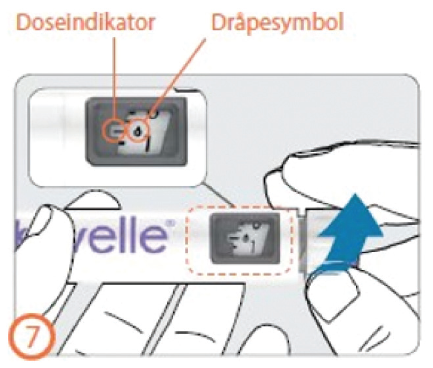 Dose igjen i pennen (dose vist ved doseindikatoren i doseringsvinduet)