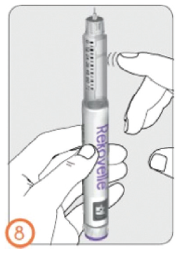 Brukerveiledningen for den ferdigfylte pennen må følges nøye. Den ferdigfylte pennen skal ikke brukes dersom oppløsningen er uklar eller inneholder partikler.