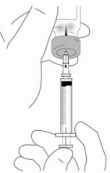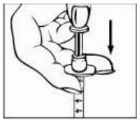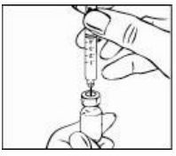 Hvis du bruker injeksjonssprøyte med nål som kan trekkes inn: IKKE PRESS STEMPLET HELT NED. Forsikre deg om at du stopper å presse stemplet når du føler motstand. Hvis du presser helt ned, så vil du høre en "klikkelyd". Dette betyr at sikkerhetsmekanismen har blitt aktivert, og nålen vil forsvinne inn i sprøyten. Dersom dette oppstår så kast produktet og begynn på nytt igjen ved å bruke et annet hetteglass og sprøyte.
